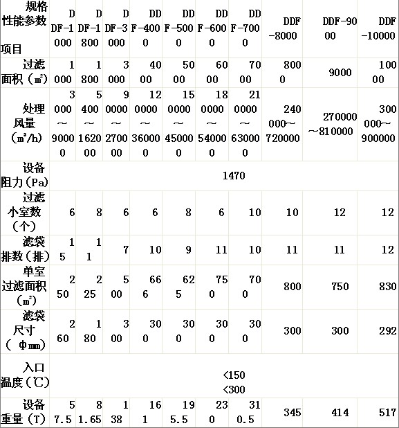 反吹风布袋除尘器相关参数