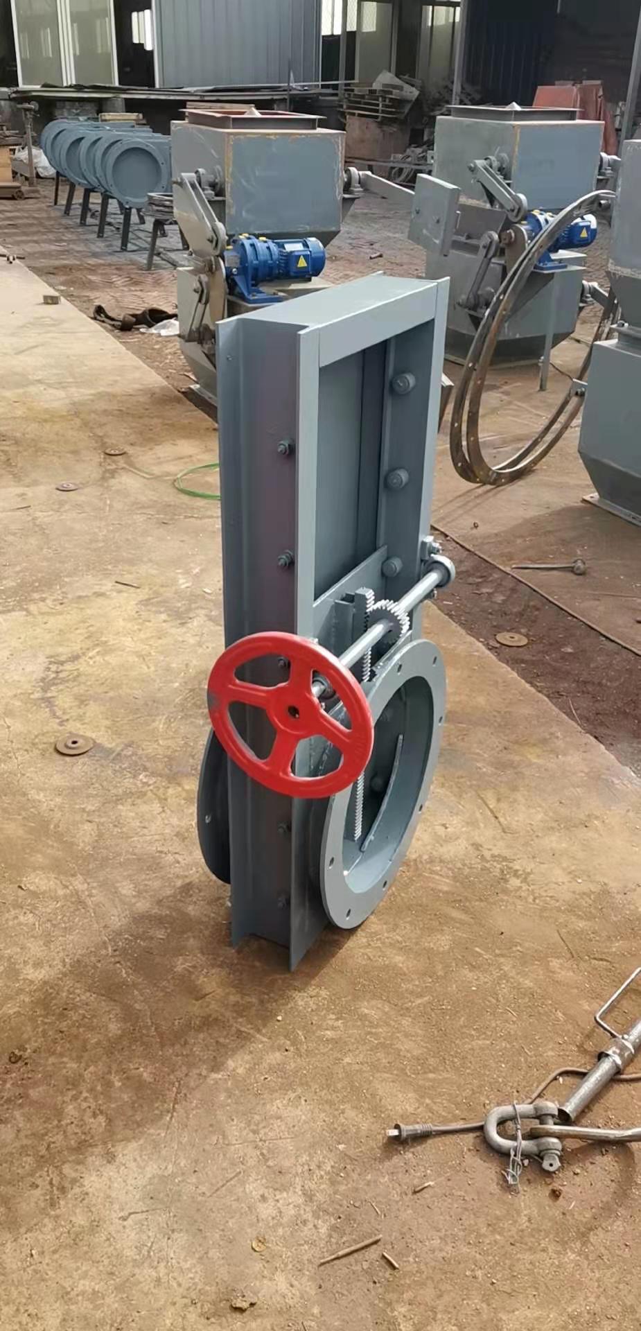 手动插板阀又称手动刀型闸阀、手动插板门等,刀形闸阀它是一种闸板与阀座始终紧密接触密封的阀门,手动螺旋闸阀的直径与卸料器进料口配套,有方形和圆形两种。其原理是通过闸板启闭使得闸板与壳体做完全脱离和关闭动作。